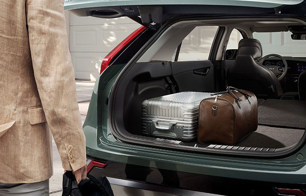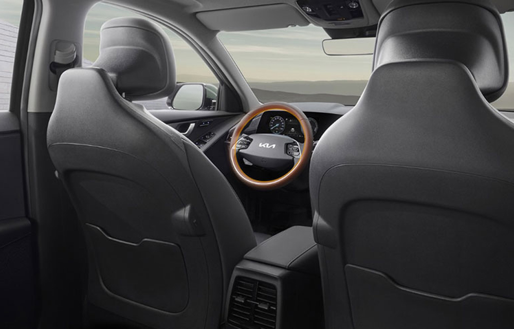The cabin boasts a sculptural design that looks sleek and modern and incorporates eco-friendly elements. Kia has utilized recycled materials and natural fibres such as eucalyptus leaves for the headliner and upholstery, giving the interior a unique and environmentally-conscious aesthetic. In terms of cargo space, it’s spacious enough to accommodate large grocery runs or bulky items. This ensures you have ample room to store your belongings without compromising passenger comfort.