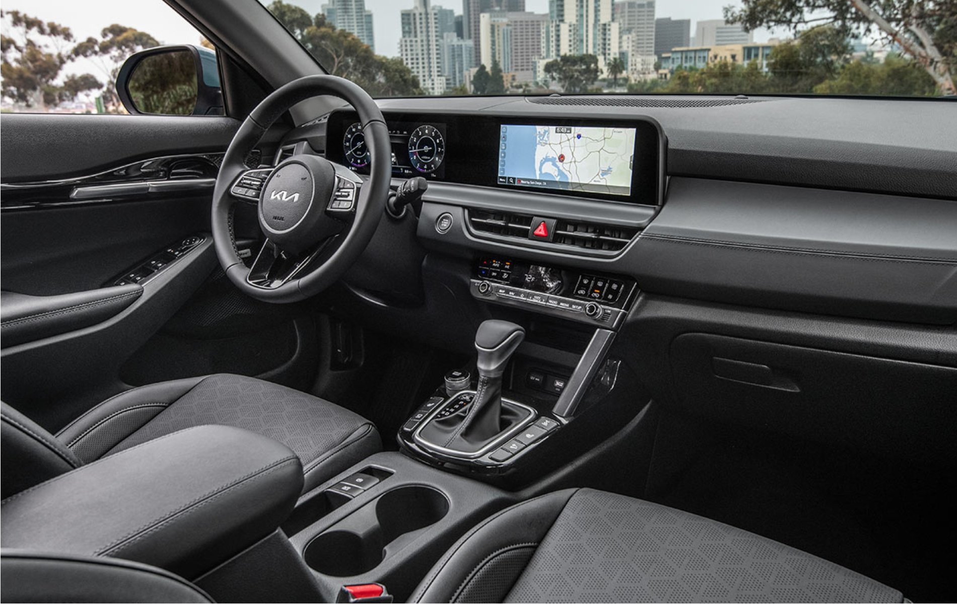 Inside, the Seltos makes technology simple and intuitive. The available dual 10.25-inch TFT displays provide both the driver and passenger with a clean, modern layout. One screen acts as a fully digital instrument cluster, giving the driver real-time vehicle stats with sharp clarity. The second display functions as the infotainment hub, providing access to navigation, audio, and multiple vehicle settings. The larger screens make it easier to see and use your controls without distraction, which is especially helpful during long drives through Alberta’s wide-open highways.